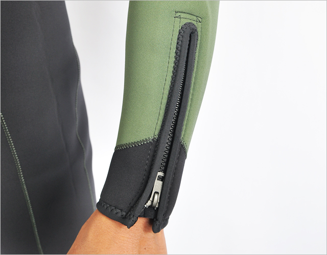 脱ぎ着を楽にする手首ファスナーを装備。ファスナーは信頼のYKK。